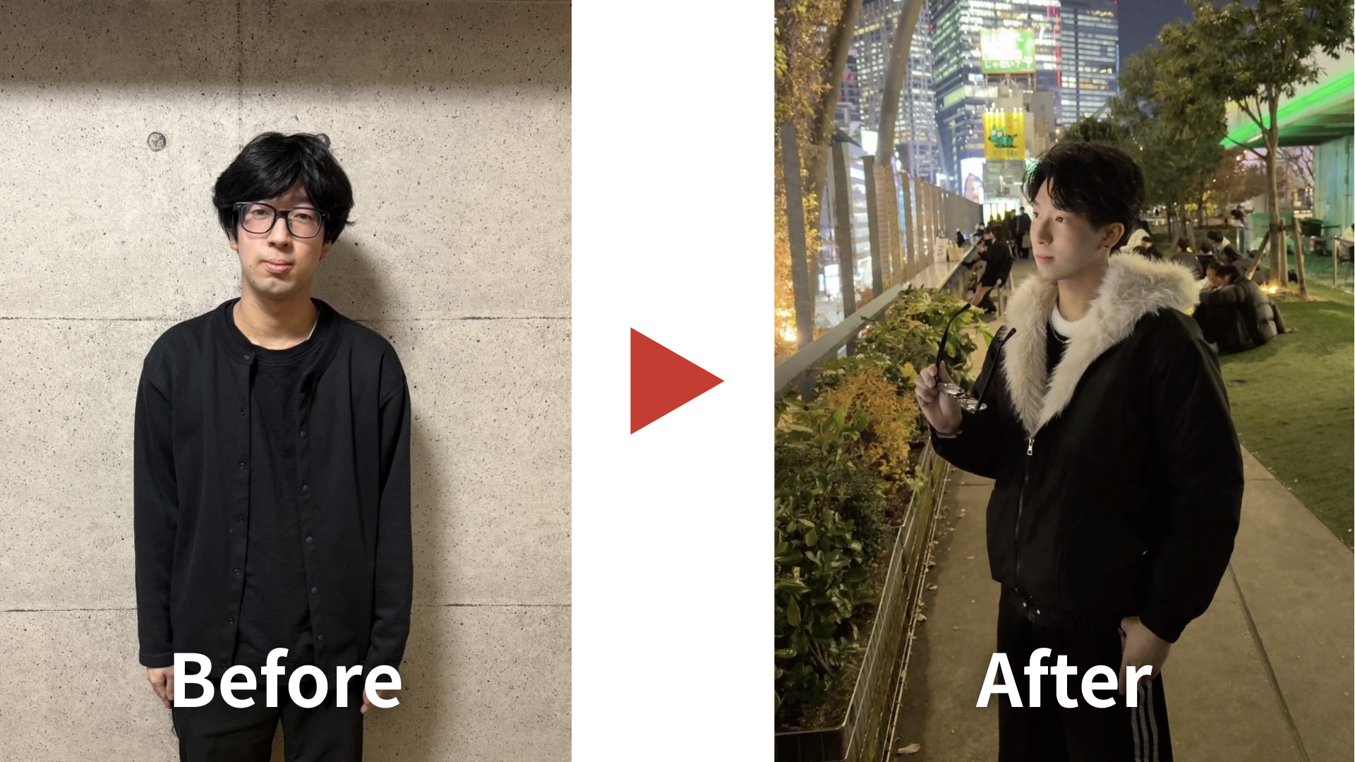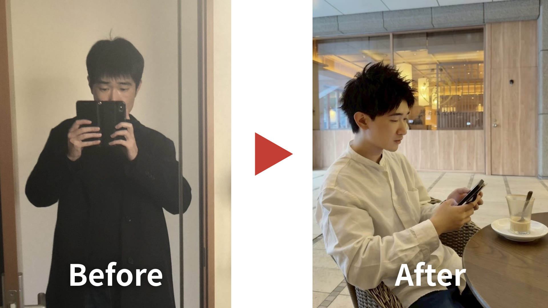 ※左の写真は、実際に他社のマッチングアプリ撮影で 撮影された同一人物です(本人掲載許可済)