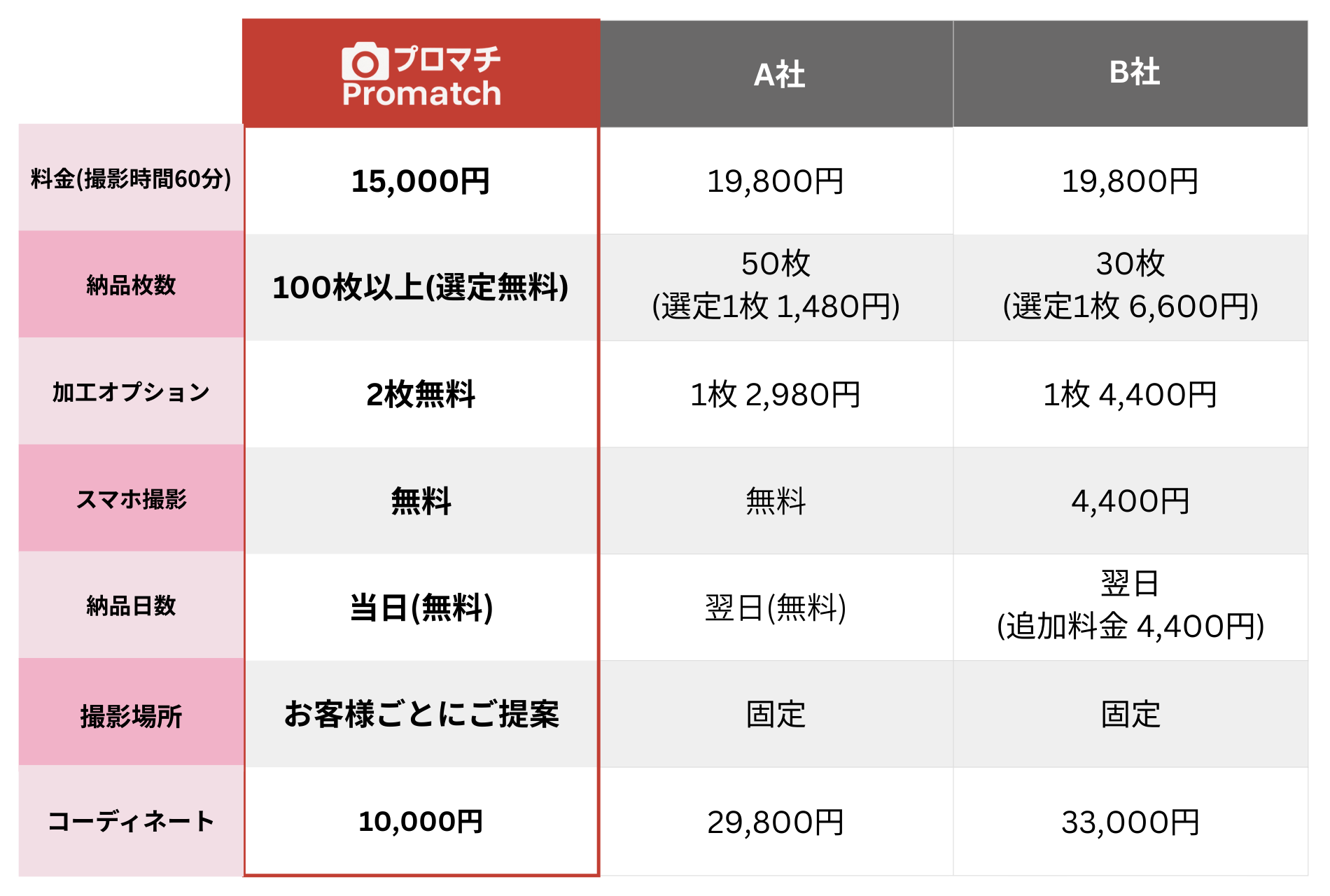 今まで何人もの方に撮影をお願いしてきましたが、プロマチのカメラマンさんの撮影とレタッチ技術は、間違いなく最高レベルでした。