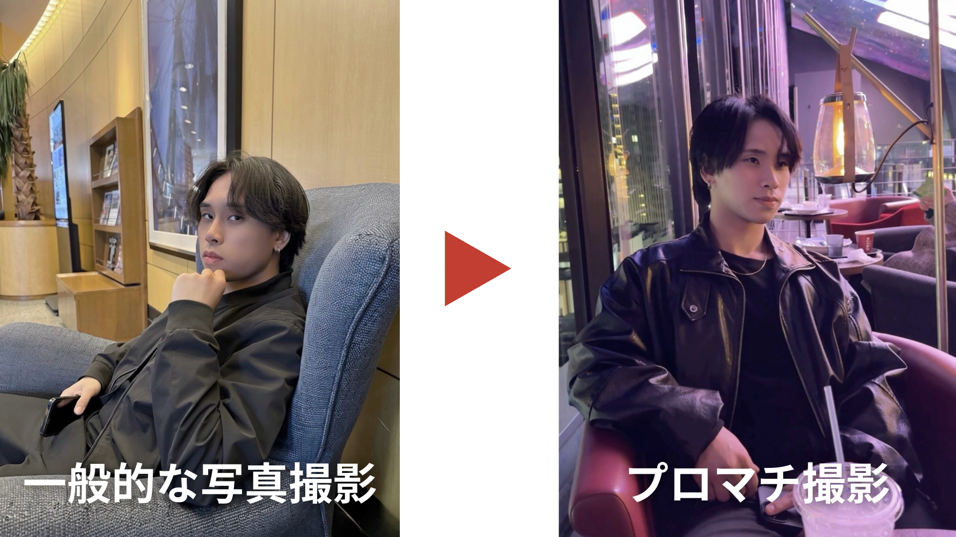 だから、写真からカッコよくなってみませんか? プロマチは、あなたの変化のスイッチになる一枚を撮ります。